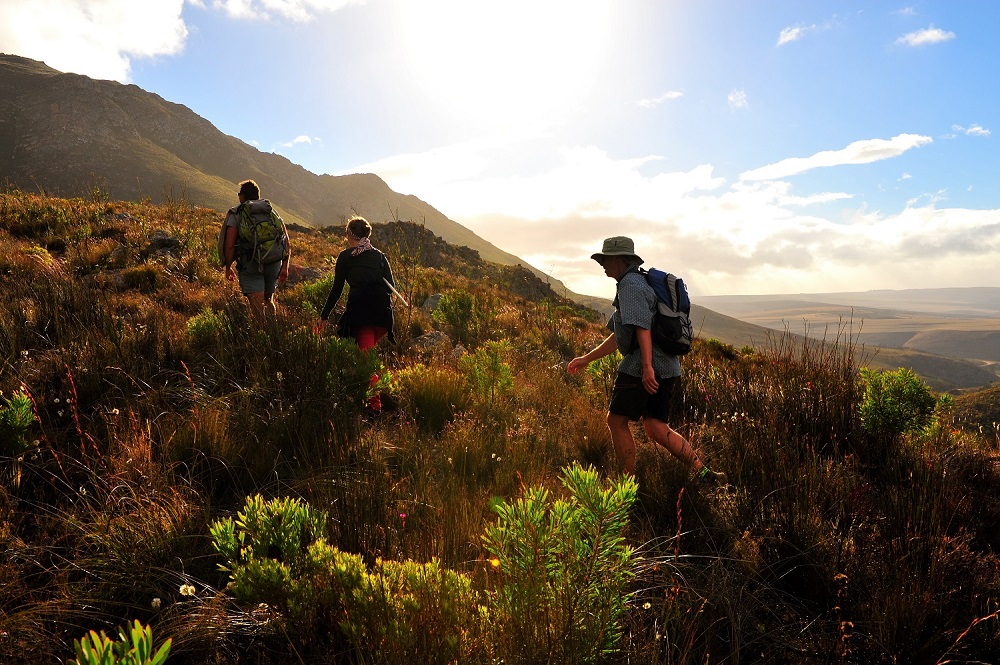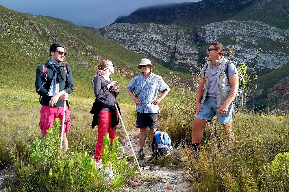 This is an extremely enjoyable, very high quality accommodated “slackpacking” trail that is slickly organised and hosted, and has a lot more going for it besides the simple joy of hiking. For starters, it is led by degree-qualified botanists who’ll engage you on flora, conservation, Cape history and more besides. Both have seemingly endless supplies of enthusiasm for the habitats through which the trail passes, be it Cape Fynbos on the upper reaches of the Groenlandberge, much rarer pockets of Renosterveld below, or the vineyards on the extensive Paul Cluver estate. Throw in a wine tasting each day, delicious, “cut-above” food both on and off trail, and exceptional home-from-home farmhouse accommodation, and this 4-day/4-night walking route is transformed into a full-on sensory experience.