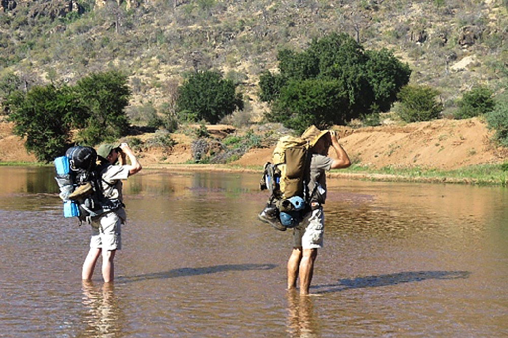 A reasonable level of fitness is required for this safari. On the fly-camping stage you’ll walk for about 7 hours each day, and there are many steep, rocky sections to cross. The trail is not for the inexperienced and you should have completed previous multiday hikes and spent some time in wilderness areas. If you can jog for 4kms on 4 consecutive days, that is a good indicator of the required level of fitness. Fitness enhances the trail experience. You must also be fluent in English and be 18 years or older. Owing to the safety requirement of maintaining the fire at night during the wild camping stage, the trail requires 8 persons so that this duty can be rotated.
