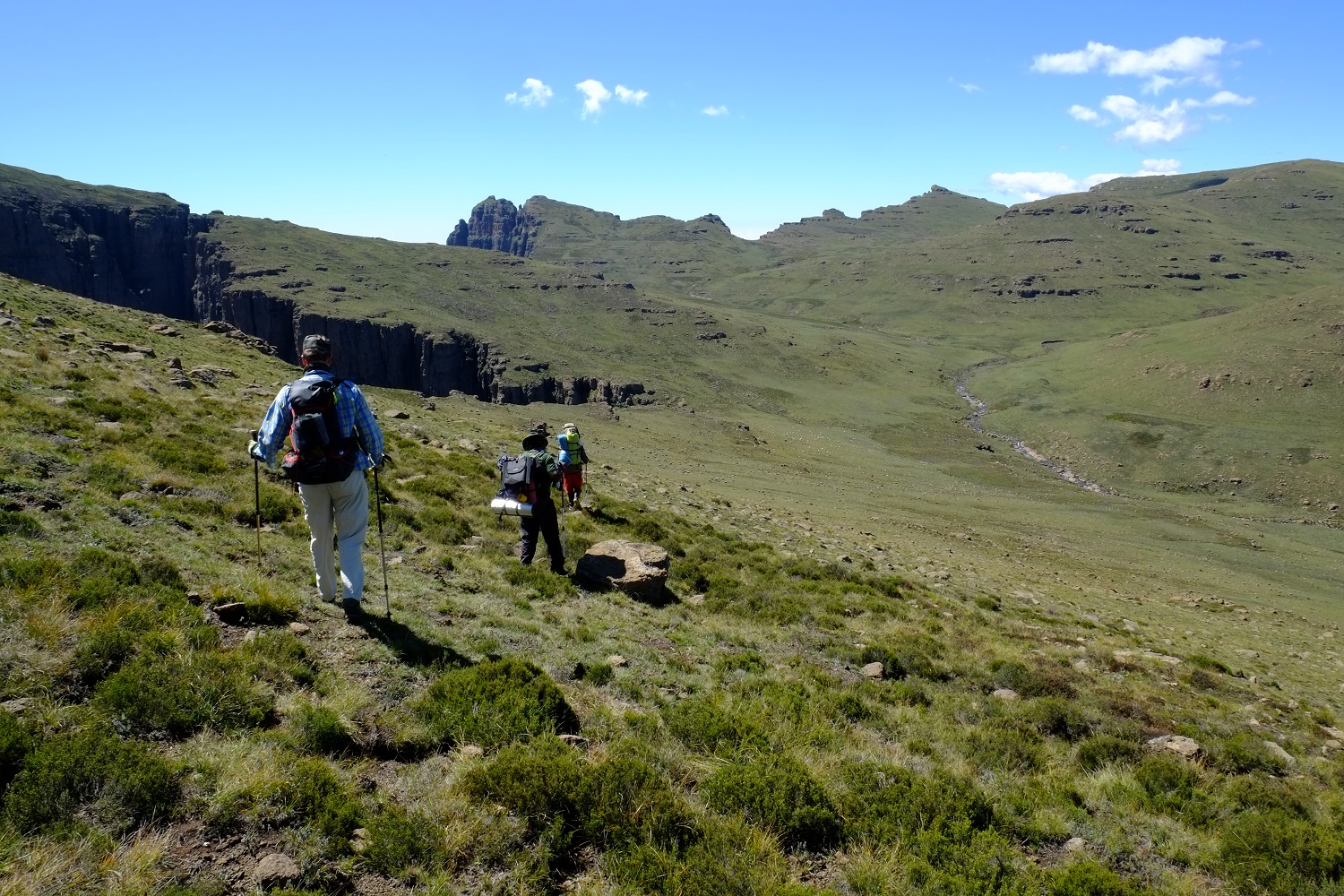 There is a possibility of meeting Basotho herders en route and experiencing a variety of mountain birds, including the magnificent Bearded Vulture (previously named the Lammegeier, or “lamb killer”), whose wingspan can reach 3m. The vulture colony occupying a series of ledges high up on the escarpment walls, just south of the Rockeries, can be viewed from close proximity and provides mesmeric viewing. Owing to the proximity of tribal lands, this trek can easily be run on a fully portered basis.