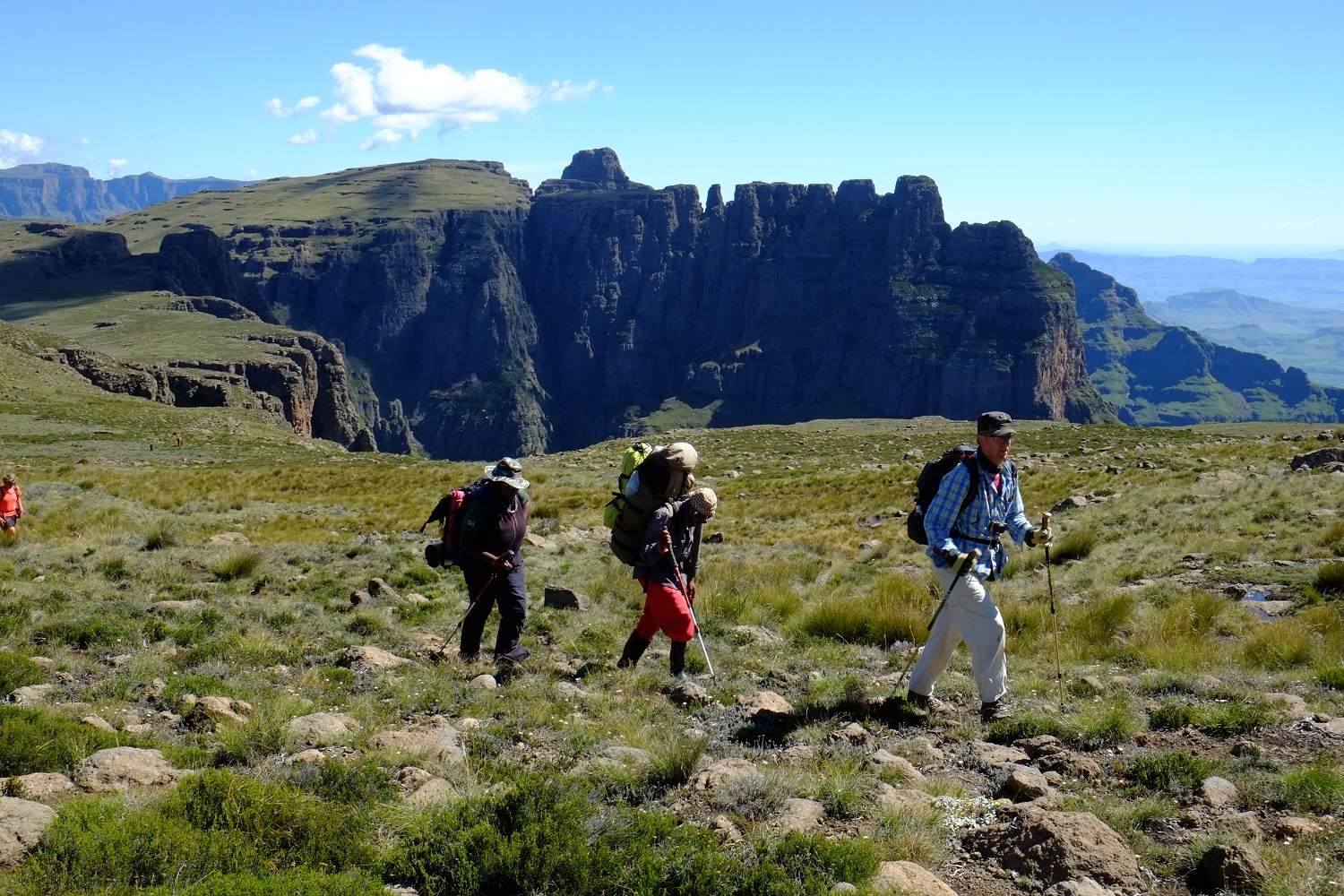 For those intending to trek for a few days, spend a few nights out and put the effort in to make a long climb over two days up the lovely Rockeries pass, the rewards are numerous – the plateau from which the Orange river springs affords many fine views and as you trek south towards nTonjelana the views over Cathedral Peak and the Bell Traverse are truly impressive.