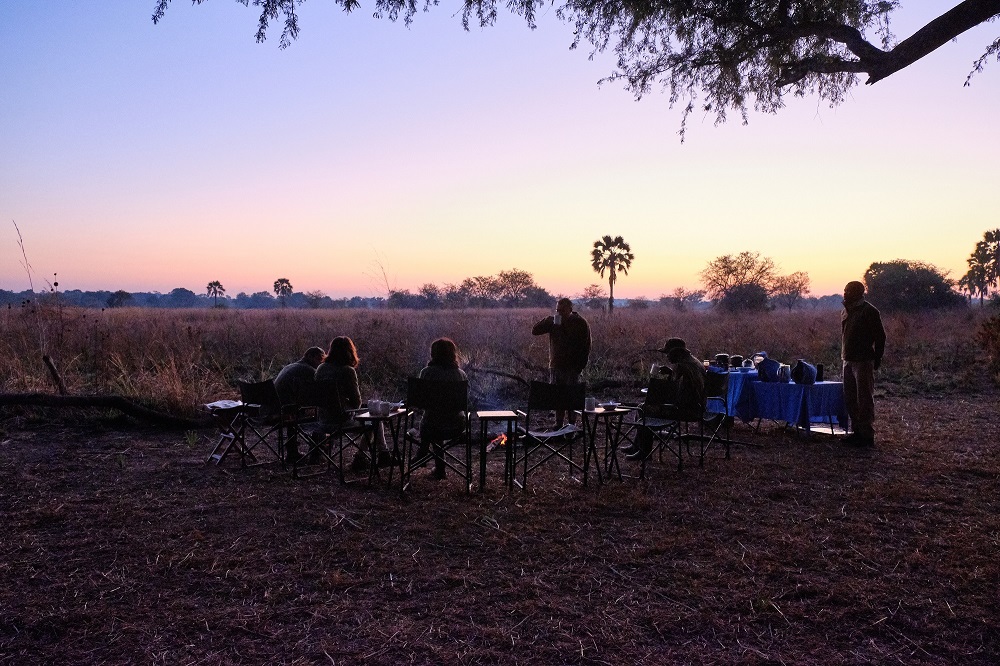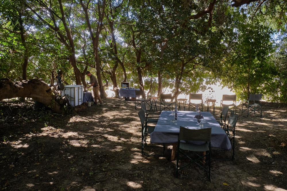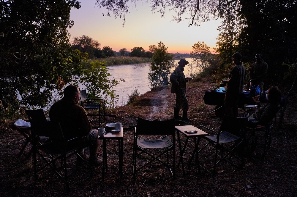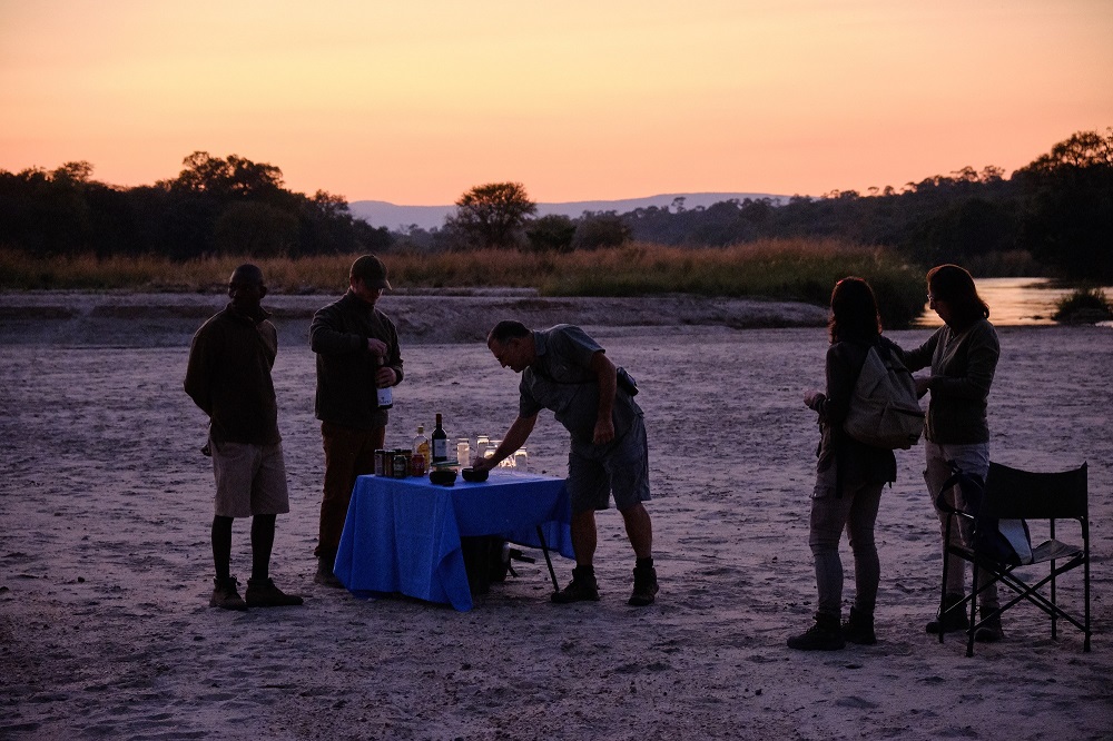 You’ll cover ground slowly and interpretively, rather than “hiking”, although overall you should expect to cover a good 10kms or more in the course of each day, depending upon heat. Morning walks usually last until lunchtime in the cooler months, with a stop for tea in a shady grove accompanied by something tasty from the camp kitchen to keep you going, but in August and September you’ll likely return to camp in the mid-late morning on account of the heat. A shorter walk takes place after lunch and siesta time, usually ending at an idyllic sundowner spot on the riverbank, where you’ll often drift into an extended stargazing session – there’s really no need to hurry back! Return to camp by vehicle (there’s a narrow camp service track that’s graded each season, as it grows over), a short but often revealing night-drive, for a hot-bucket shower before dinner beneath the stars.