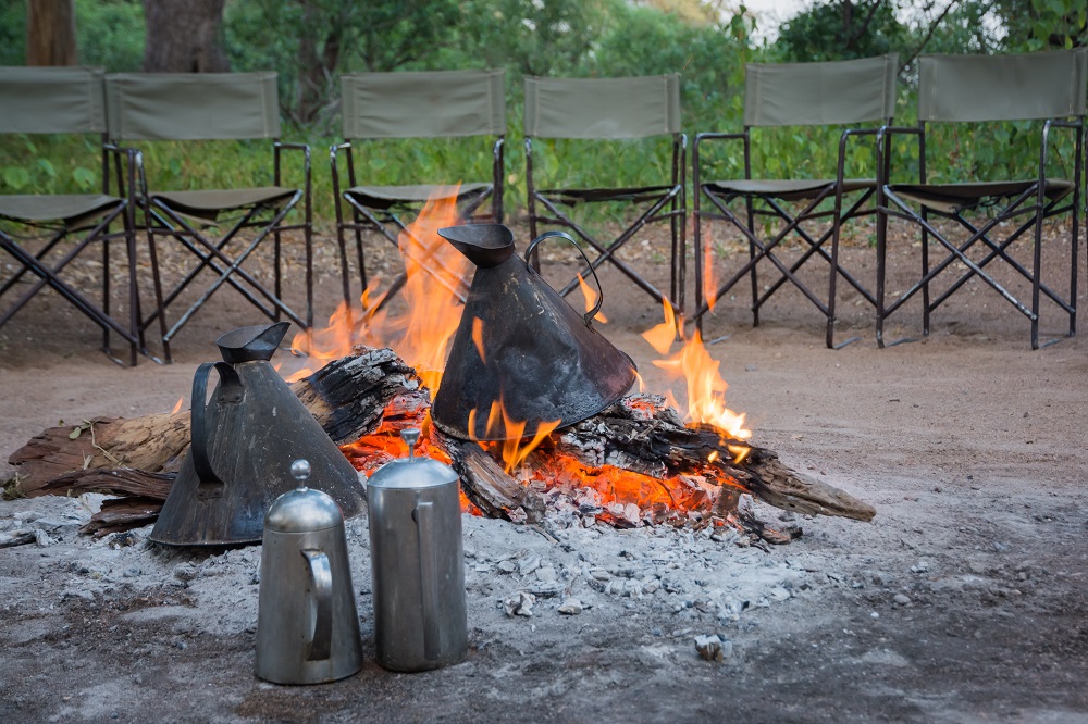 Once at the new camp, you’ll then have time to relax during the heat of the day, usually a short siesta. Afternoon tea is then taken before you head out on an afternoon walk. This walk is normally a bit shorter than the morning walk, usually lasting between 2 and 3 hours. You’ll get back into camp just after sunset as you cannot be out on foot after dark. A fire and drinks will welcome you back. There is some time to have a shower and freshen up before dinner. After dinner, time is spent relaxing and socialising around the fire, listening to the sounds of the bush at night.