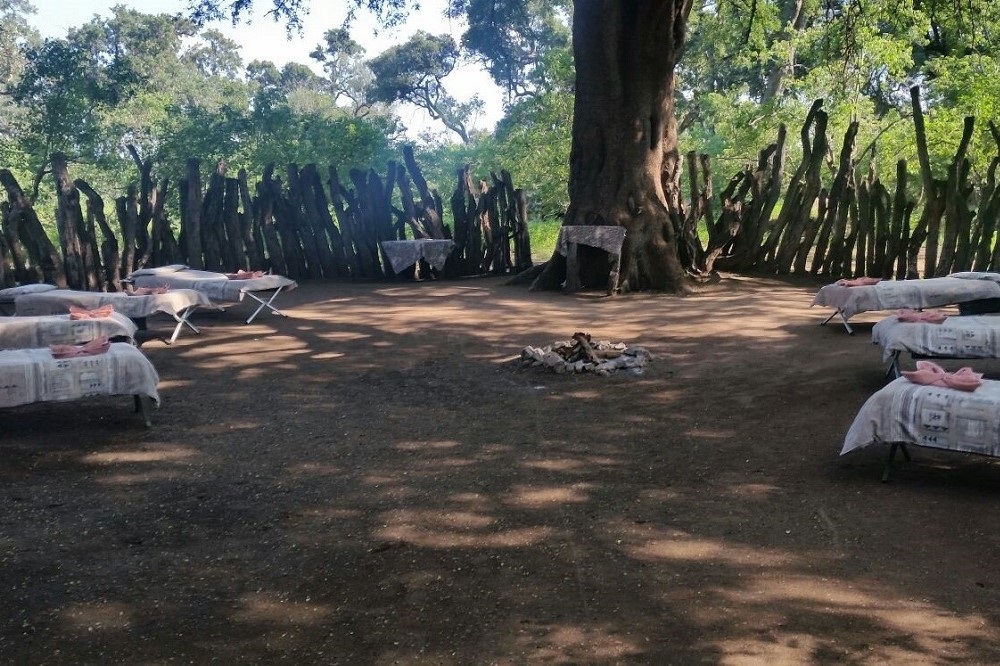 THE KGOTLA is based on an old tribal court comprising leadwood logs constructed in a circular boma. Guests sleep within the boma on comfortable camp cots beneath the stars and around a central fire. Your guide will sleep in the boma with you to ensure safety and security. There are hot showers and flushing loos. Should rain be predicted, tents may be erected at the Kgotla, or Mohave Camp or Serolo Camp will be utilised instead.