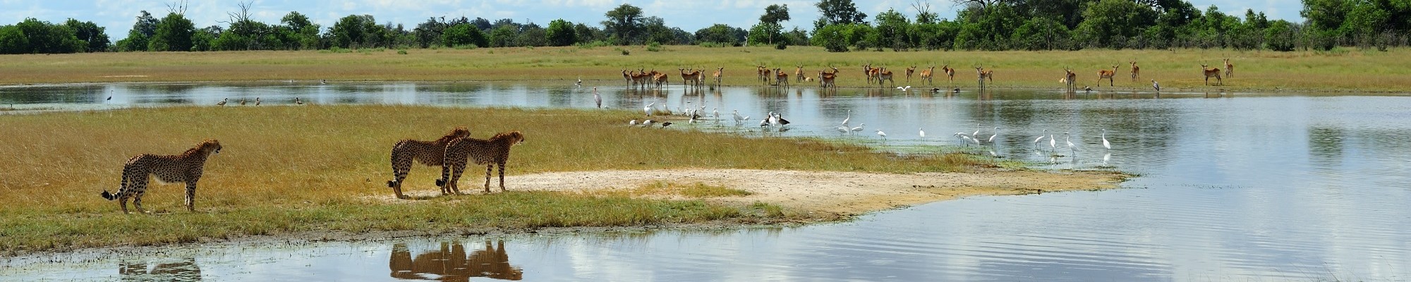 Although the Delta is thought of as a water system, some parts of it do not contain channels and do not flood. These areas become largely dry in peak season and have excellent land-based game-viewing. However, most camp experiences fall somewhere between these two extremes, enabling safari goers to mix some land-based game viewing with time spent next to or out on water, to a greater or lesser extent. Some camps give onto deep perennial water channels, which can be explored by motor-boat all year round, others (not all) are able to offer particularly good scope for exploring shallow floodplains and swamps during flood conditions, whilst at the same time offering the opportunity to do some walks or game drives.